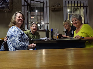 It was an amazing experience both in the cuisine as well as the atmosphere. Un Cadeau ( aka in the US as an amuses bouche - it tickles me that we have adopted a French word) of a large shot glass with Pumpkin soup topped truffle mousse (cream). It was an experience in and of itself. The ladies suggested the fish and chips and were they ever right! Two pieces of fish, in an amazing batter accompanied by the best tarter sauce ever! A tiny amount of salad and a small amount of beautiful tomato mix that reminded me of a bruchetta topping. Jodi and I shared Tarte du Citron for dessert. Annika had a Chocolate cigar and it certainly did a fabulous job of appearing to be so.